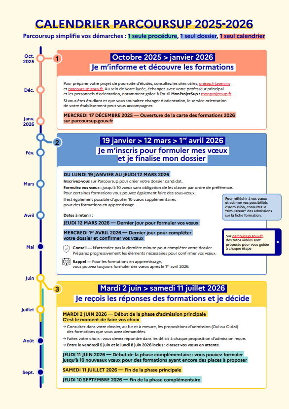 La procédure Parcoursup 2025-2026 est officiellement lancée. Si vous êtes lycéen, étudiant en réorientation ou candidat à l’apprentissage, plusieurs dates clés arrivent dans les prochains mois. Voici un point complet sur les échéances importantes jusqu’au 1er avril 2026 pour vous aider à anticiper et éviter toute erreur.